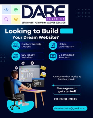 At Dare Technica, we are architects of the future — a technology company driven by bold ideas and a passion for innovation. Our work blends cutting-edge development, smart automation, future-forward research, and transformative education to create real-world impact. From startups to enterprises and classrooms to labs, we empower people and systems to do more, learn faster, and build better.